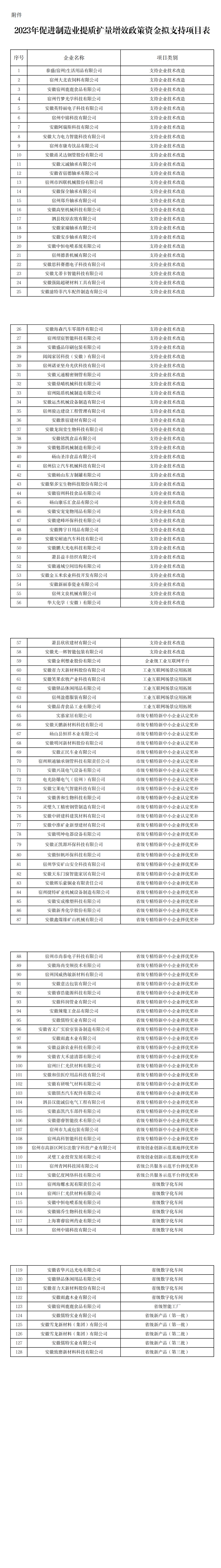 根据《宿州市人民政府关于关于进一步优化提升惠企政策 促进经济平稳健康运行若干措施》(宿政发〔2023〕2号)及《关于开展2023年促进制造业提质扩量增效政策资金项目申报工作的通知》(宿经信〔2023〕67号)规定,现将2023年促进制造业提质扩量增效政策资金拟支持项目予以公示。